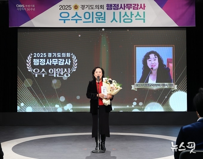 (뉴스핏 = 김수진 기자) 경기도의회 여성가족평생교육위원회 곽미숙 위원(국민의힘, 고양6)은 8일 OBS 개국 30주년 특집으로 마련된 ‘2025 경기도의회 행정사무감사 우수의원’에 선정됐다.
