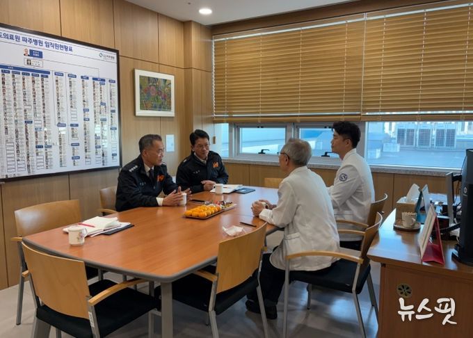 (뉴스핏 = 김수진 기자) 파주소방서는 지난 8일 경기도의료원 파주병원을 방문해 중증 응급환자의 신속하고 안전한 이송체계 구축을 위한 협력 방안을 논의했다.