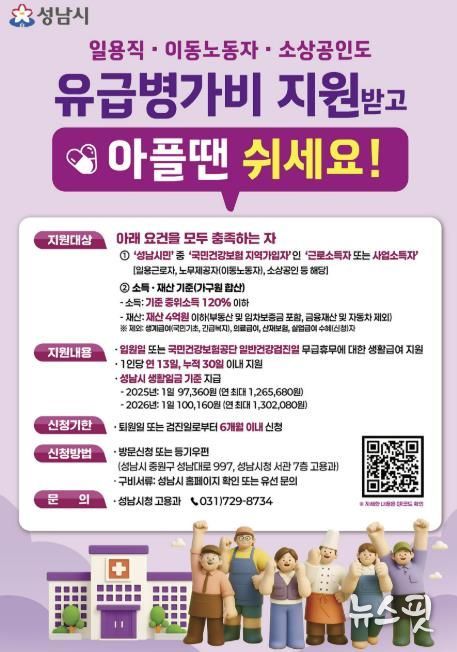 (뉴스핏 = 김호 기자) 성남시는 2026년에 노동취약계층을 대상으로 생활임금(10만160원)에 준하는 유급병가비를 지원한다.
