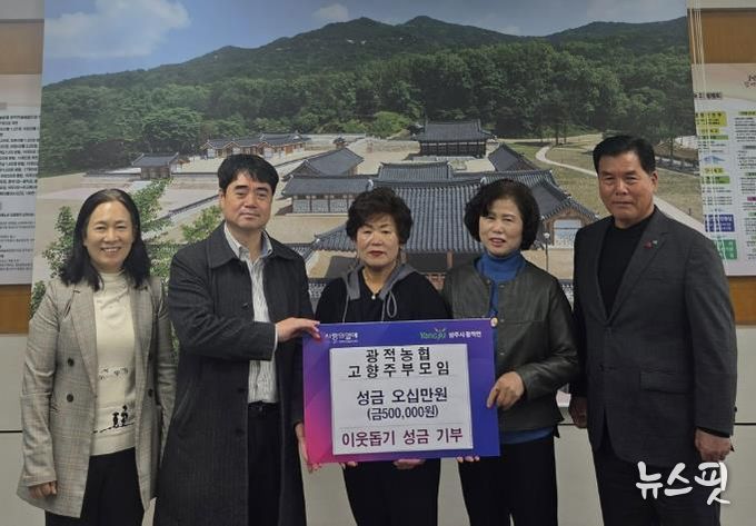 (뉴스핏 = 김호 기자) 광적농협 산하 ‘고향을 생각하는 주부모임’에서 지난 10일 지역 내 취약계층의 따뜻한 겨울나기를 돕기 위해 광적면에 온품캠페인 성금 50만 원을 기탁했다.