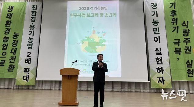 (뉴스핏 = 김수진 기자) 경기도의회 농정해양위원회 방성환 위원장(국민의힘, 성남5)은 10일 YBM연수원에서 열린 ‘경기도친환경경농업인연합회 연구사업 보고회 및 송년회’에 참석해 축사를 전하며 친환경농업 발전을 위해 노력해온 농업인들에게 깊은 감사의 뜻을 전했다.