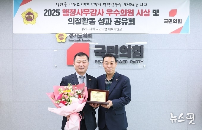 (뉴스핏 = 김수진 기자) 경기도의회 경제노동위원회 소속 한원찬 의원(국민의힘, 수원6)은 12일 경기도의회에서 열린 ‘2025 종합행정사무감사 대상의원 시상식 및 의정활동 성과 공유회’에서 우수의원(대상)으로 선정되어 수상의 영예를 안았다.