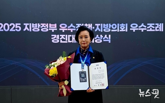 (뉴스핏 = 김수진 기자) 경기도의회 정윤경 부의장(더불어민주당·군포1)은 14일 국회 의원회관에서 열린 ‘2025 지방정부 우수정책ㆍ지방의회 우수조례 경진대회 시상식’에서 지방의회 우수조례 부문 최우수상을 수상하는 영예를 안았다.