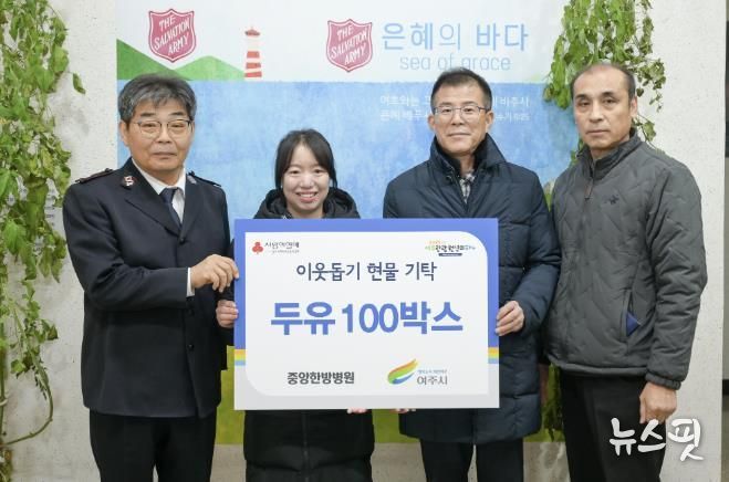 (뉴스핏 = 김호 기자) 중앙한방병원에서는 지난 16일 여주시에 이웃돕기 현물로 130만원 상당의 두유 100박스를 기탁했다.