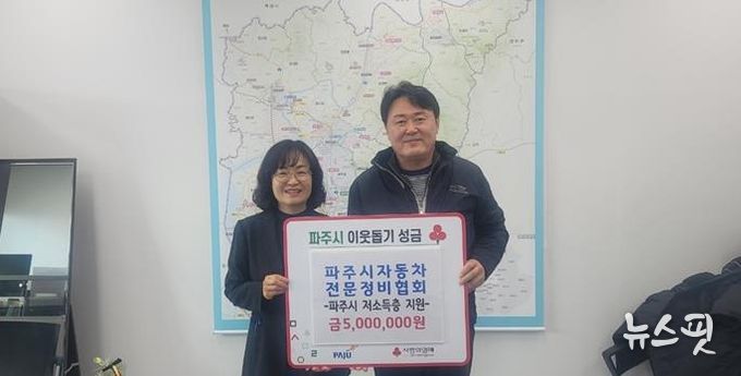 (뉴스핏 = 김호 기자) 파주시는 지난 22일, 파주시자동차전문정비협회가 파주시청을 방문하여 관내 취약계층을 위해 써달라며 현금 5백만 원을 기탁했다고 밝혔다.