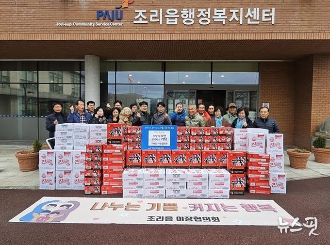 (뉴스핏 = 김호 기자) 파주시 조리읍 이장협의회는 연말을 맞아 지역사회 나눔 문화 확산과 복지 사각지대 해소를 위해 지난 23일 조리읍에 라면 150상자를 기탁했다.