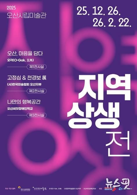 '2025 지역 상생전'은 2025년 12월 26일부터 2026년 2월 22일까지 오산시립미술관에서 진행되며, 매주 월요일과 1월 1일, 설날 당일은 휴관한다. 전시에 대한 자세한 내용은 오산문화재단 누리집을 통해 확인할 수 있다.