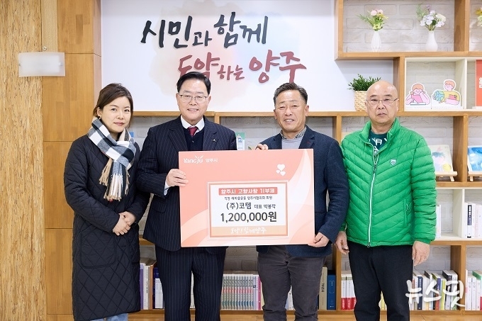 ㈜코템은 산업용 공기정화장치를 제조하는 기업으로, 박봉락 대표이사는 “양주시의 지속적인 발전에 보탬이 되는 고향사랑기부제가 더욱 활성화될 수 있도록 앞으로도 적극 협력하겠다”고 말했다.