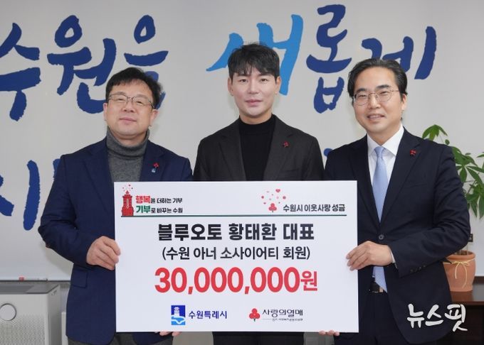(뉴스핏 = 김호 기자) 황태환 블루오토 대표가 12월 31일 “취약계층 아동 지원에 사용해달라”며 3000만 원을 수원시에 기부했다.