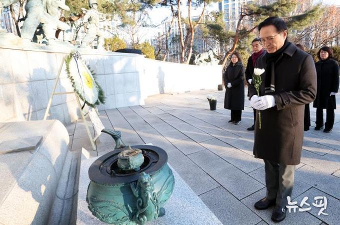 (뉴스핏 = 김수진 기자) 임태희 경기도교육감이 2일 아침 안양시 현충탑을 찾아 참배하며 2026 병오년(丙午年) 새해 공식 일정을 시작했다.