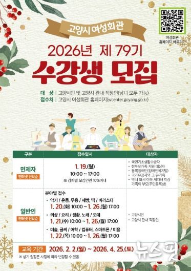 (뉴스핏 = 김호 기자) 고양특례시 여성회관은 오는 1월 19일부터 26일까지 2026년도 제79기 정규강좌 수강생을 모집한다고 밝혔다.