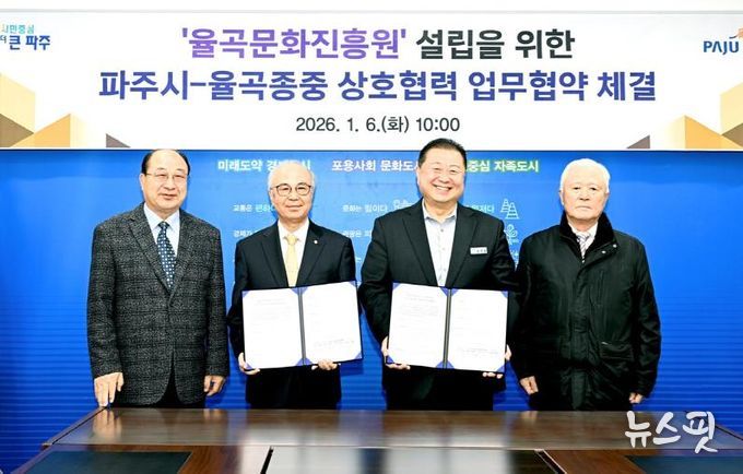 김경일 파주시장은 “이번 협약은 율곡 선생의 정신을 현대적으로 계승하고, 파주시를 대표하는 역사·문화 자산을 체계적으로 발전시키는 중요한 출발점”이라고 강조하며 “율곡문화진흥원이 학술과 교육, 문화가 융합된 거점시설로 자리매김할 수 있도록 율곡 종중과의 협력에 최선을 다하겠다”라고 말했다.