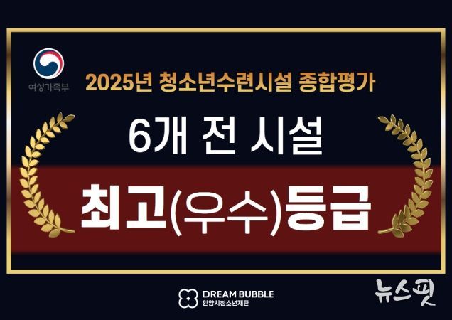 (뉴스핏 = 김수진 기자) 안양시청소년재단은 성평등가족부와 한국청소년정책연구원이 실시한 ‘2025년도 청소년수련시설 종합평가’에서 소속 6개 청소년수련시설이 전국 최상위 성과를 거두며 운영 역량을 공식적으로 인정받았다.