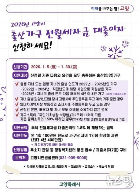 (뉴스핏 = 김호 기자) 고양특례시가 ‘아이 키우기 좋은 도시’를 목표로 올해 출산·양육 지원을 더욱 강화한다.