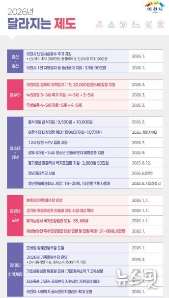 (뉴스핏 = 김호 기자) 이천시가 2026년 새해를 맞아 시민 생활과 밀접한 달라지는 제도를 발표했다.