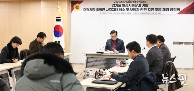 (뉴스핏 = 김수진 기자) 경기도의회 건설교통위원회 허원 위원장(국민의힘·이천2)은 19일 경기도의회 중회의실에서 '경기도 인공지능(AI) 기반 대형차량 우회전 사각지대 해소 및 보행자 안전 지원 조례' 제정을 위한 공청회를 개최했다.
