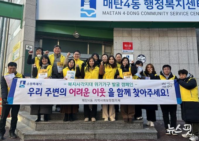 오미숙 매탄4동장은 “매탄4동 행정복지센터는 앞으로도 지속적인 위기가구 발굴 활동을 통해 동절기 복지 안전망 구축에 힘쓰겠다”며 “추운 날씨에도 캠페인에 적극 참여해 주신 지역사회보장협의체 위원님들께 감사드린다”고 밝혔다.