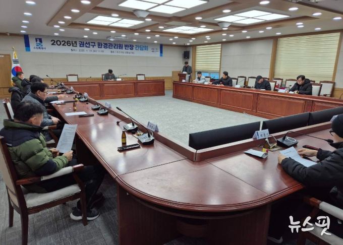 (뉴스핏 = 김호 기자) 수원시 권선구 환경위생과는 21일 최일선에서 일하는 환경관리원들을 격려하고 애로사항을 청취하고자 ‘환경관리원 간담회’를 개최했다.