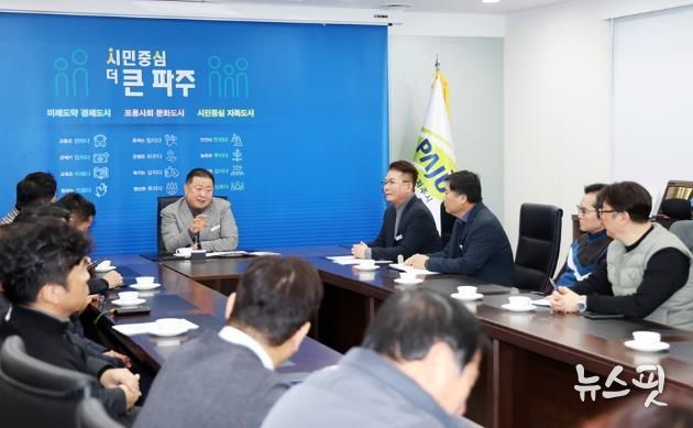 (뉴스핏 = 김호 기자) 파주시는 지난 20일 한국공인중개사협회 파주시지회와 간담회를 열고, 건전한 부동산 거래 질서를 확립하기 위한 중개업 현장의 목소리를 청취하는 시간을 가졌다.