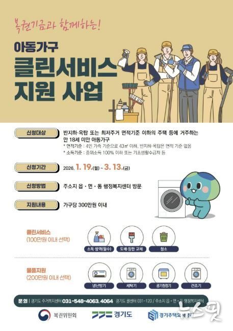 (뉴스핏 = 김수진 기자) 시흥시는 열악한 주거환경에 처한 아동가구의 주거환경 개선과 생활 안정을 위해 ‘2026년 아동가구 클린서비스 지원 사업’을 본격 추진한다고 23일 밝혔다.