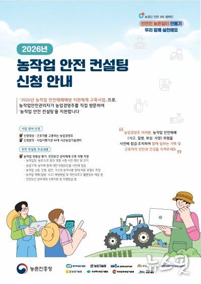 이번 사업은 농작업 중 발생할 수 있는 사고를 예방하기 위해 마련됐으며 모집 규모는 110농가 내외다. 접수는 선착순으로 마감한다.