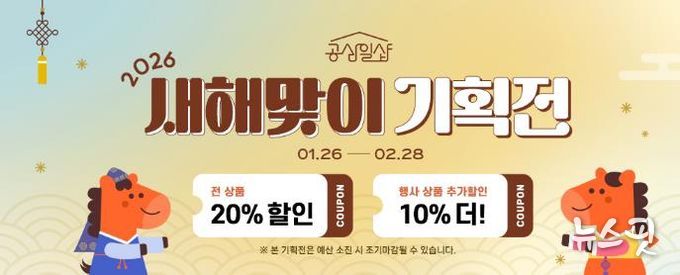 (뉴스핏 = 김수진 기자) 경기도주식회사는 경기도 사회적경제제품 온라인몰인 공삼일샵(031#)에서 26일부터 다음 달 28일까지 ‘2026 새해맞이 기획전’을 펼친다.