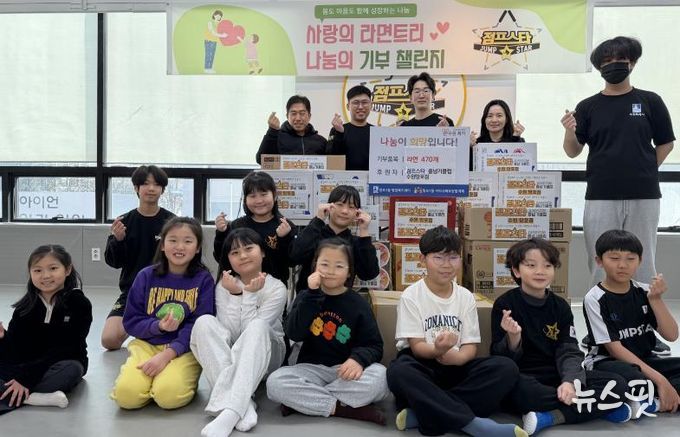 (뉴스핏 = 김호 기자) 수원시 영통구 망포1동은 지난 27일 점프스타 줄넘기클럽 수원망포점이 원생들이 자발적으로 모은 라면 470개를 어려운 이웃을 위해 후원했다고 밝혔다.