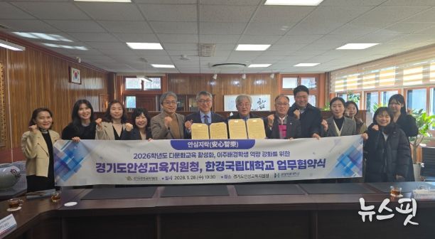 (뉴스핏 = 김수진 기자) 경기도안성교육지원청은 28일 경기도안성교육지원청에서 한경국립대학교와 함께 안성 관내 다문화교육 활성화 및 이주배경학생 역량 강화를 위한 업무협약(MOU)을 체결했다.