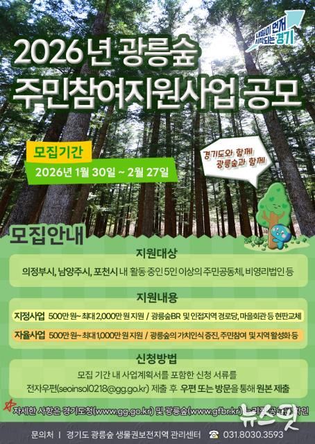 (뉴스핏 = 김수진 기자) 경기도가 광릉숲 생물권보전지역 활성화를 위해 2026년 광릉숲 주민참여지원사업 참여자를 모집한다.