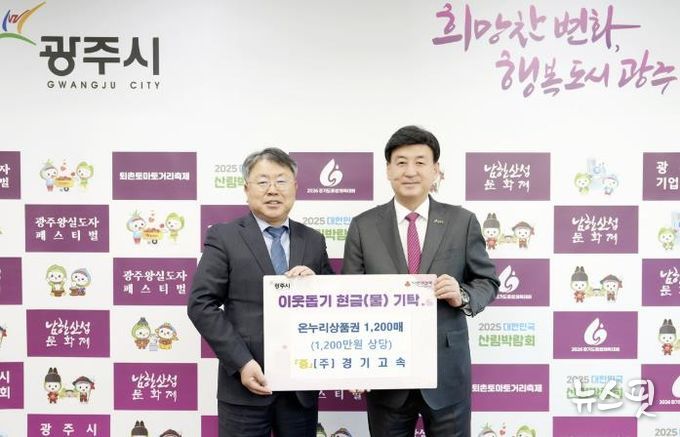 이날 ㈜경기고속은 온누리상품권 1만 원권 1천200매(1천200만 원 상당), 광주시충청향우연합회에서는 백미 10㎏ 19포(58만 원 상당), 경기광주전기공사협의회는 성금 300만 원을 각각 전달했다.