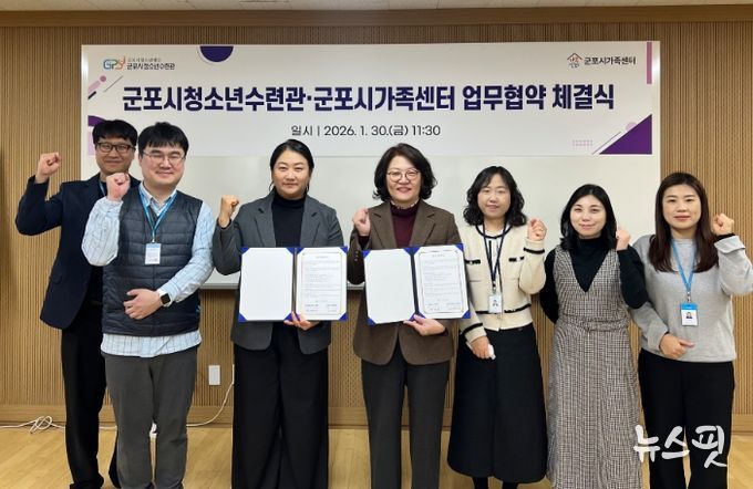 (뉴스핏 = 김수진 기자) (재)군포시청소년재단 군포시청소년수련관(관장 박윤정)과 군포시가족센터(센터장 박성희)는 1월 30일, 군포시청소년수련관 3층 어학실에서 다문화가정을 포함한 청소년의 건강한 성장과 전통문화 가치 확산을 위한 업무협약(MOU)을 체결했다.