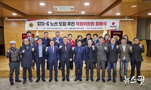 이날 경기 포천시 소흘읍 행정복지센터 대강당에서 열린 ‘경기도의회 국민의힘 GTX-G 노선 도입 추진 특별위원회’ 출범식에는 백현종 대표의원과 김성남 특별위원장을 비롯해 방성환 경기도의회 농정해양위원장, 서광범(여주1) 의원 등 국민의힘 소속 도의원들이 다수 참석했다.