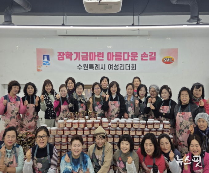 김미애 수원시여성리더회 총회장과 이지영 수원시여성단체협의회 명예회장 등 회원 20여 명이 참여해 명란젓과 낙지젓 등 4종의 젓갈을 소포장해 판매했다. 수익금은 장학금으로 기부할 예정이다.