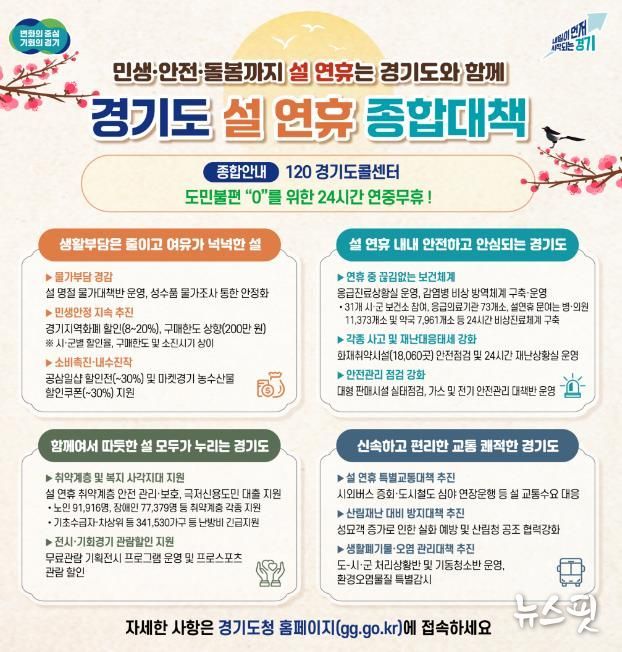 (뉴스핏 = 김수진 기자) 경기도가 도민들이 따뜻하고 편안한 명절을 보낼 수 있도록 ‘설 연휴 종합대책’을 추진한다.