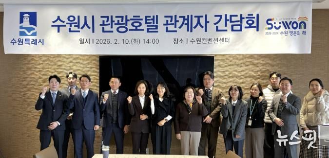 이날 간담회에는 선은임 수원시 문화관광체육국장, 황명희 관광과장 등 수원시 관계자들과 코트야드 메리어트 수원·라마다프라자호텔 수원 등 수원시 8개 관광숙박업체 관계자, 수원컨벤션센터 관계자 등이 참석했다. ‘2026~2027 수원 방문의 해’ 추진 현황, ‘수원 국제회의복합지구’ 지정 현황을 설명한 후 관광숙박업 관계자들과 관광 활성화 방안을 논의했다.