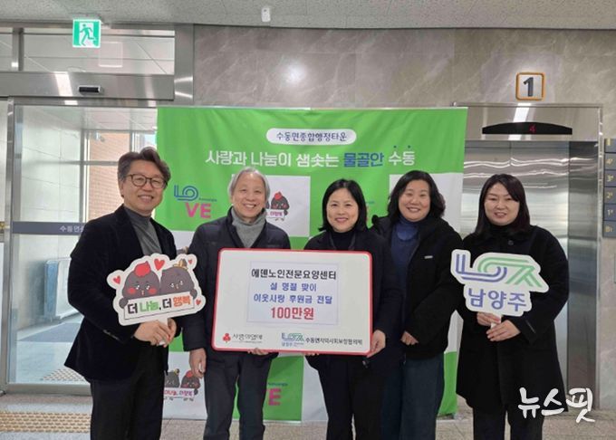 (뉴스핏 = 김호 기자) 남양주시는 지난 9일 수동면 에덴노인전문요양센터가 설 명절을 맞아 어려운 이웃을 위한 후원금 100만 원을 수동면 지역사회보장협의체에 지정기탁했다고 11일 밝혔다.