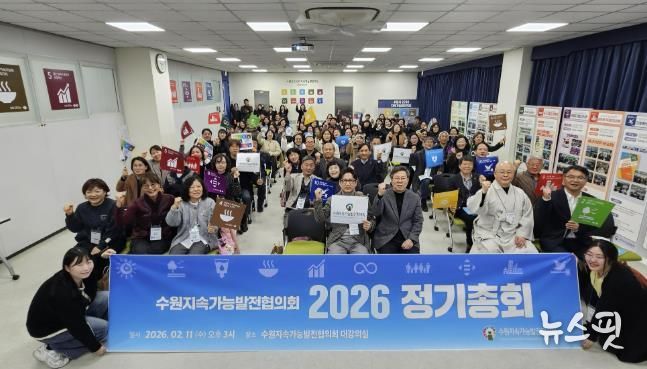 (뉴스핏 = 김호 기자) 수원시지속가능발전협의회는 11일 더함파크 대강의실에서 ‘2026년 정기총회’를 열고, 2025년 사업 추진 결과를 공유했다. 또 2026년 사업계획과 예산안을 심의·의결했다.