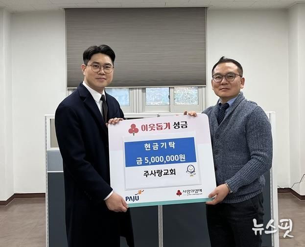 (뉴스핏 = 김호 기자) 설 명절을 앞둔 지난 10일, 금촌2동에 위치한 주사랑교회가 지역 내 취약계층을 위한 성금 500만 원을 금촌2동에 전달했다.