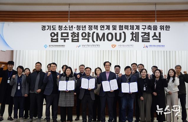 (뉴스핏 = 김호 기자) 수원시청소년청년재단은 2월 12일, 경기도미래세대재단, 성남시청소년청년재단, 시흥시청소년청년재단과 함께 ‘경기도 청년 정책 연계 및 협력체계 구축을 위한 업무협약’을 체결했다.