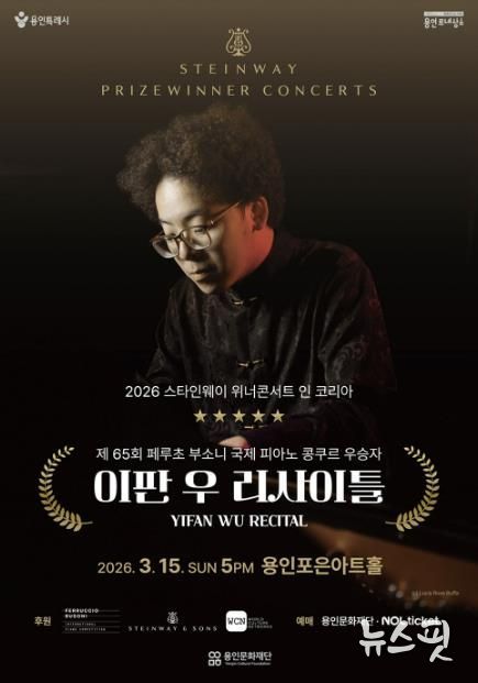 (뉴스핏 = 김수진 기자) 용인문화재단은 오는 3월 15일 오후 5시, 용인포은아트홀에서 ‘2026 스타인웨이 위너콘서트 – 이판 우 리사이틀’을 개최한다고 12일 밝혔다.