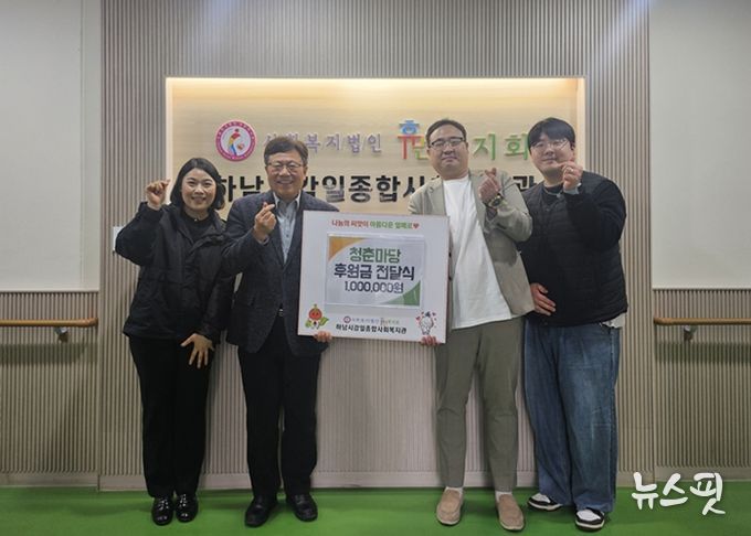 (뉴스핏 = 김호 기자) 어린이·청소년 교육 공연을 운영하는 전문업체 청춘마당은 지역 취약계층 지원을 위해 2월 11일 하남시감일종합사회복지관(사회복지법인 휴먼복지회 운영)에 후원금 1백만원을 전달했다.