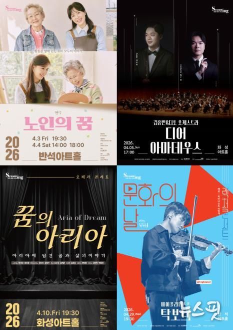 (뉴스핏 = 김수진 기자) 화성시문화관광재단은 오는 4월, 다채로운 장르의 기획 공연을 선보인다. 삶을 이야기하는 연극부터 세계적인 클래식 스타의 무대, 스토리텔링 형식 오페라 콘서트, 유튜브에서 만나던 탁보늬의 렉처 콘서트까지. 세대를 아우르는 프로그램을 통해 시민 누구나 자신의 취향에 맞는 공연을 선택할 수 있도록 기획했다.