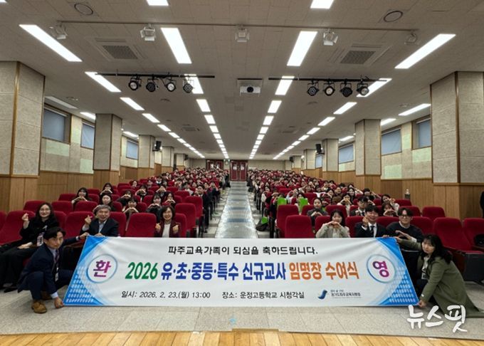 (뉴스핏 = 김수진 기자) 경기도파주교육지원청은 23일 오후, 경기도파주교육지원청 주관으로 운정고등학교 시청각실에서 ‘2026. 3. 1.자 유‧초‧중등‧특수‧비교과 신규교사 임명장 수여식’을 개최하고 총 189명의 신규교사에게 임명장을 수여했다.