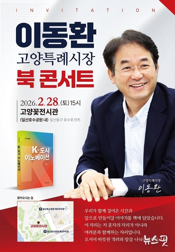 (뉴스핏 = 김수진 기자) 이동환 고양시장이 오는 28일 오후 3시, 일산호수공원 내 고양꽃전시관(일산동구 호수로 595)에서 저서 ‘K-도시 이노베이션’의 북콘서트를 개최한다.