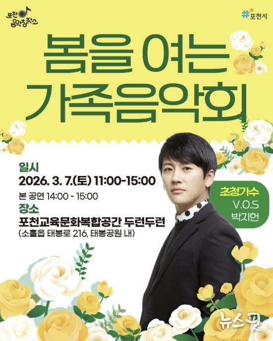 (뉴스핏 = 김수진 기자) 포천시는 오는 3월 7일 포천시 교육문화복합공간 두런두런에서 ‘포천음악창작소, 봄을 여는 가족음악회’를 개최한다고 25일 밝혔다.