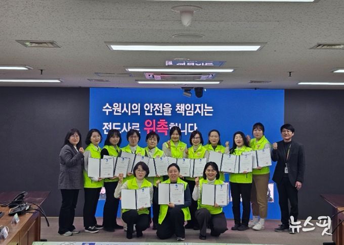 (뉴스핏 = 김호 기자) 수원특례시는 25일 시청 재난안전상황실에서 2026년 새빛안전지킴이 교육 강사 12명에게 위촉장을 수여했다. 위촉 기간은 올해 12월 31일까지다.