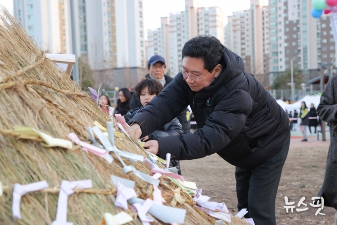 이 시장은 "달집 태우기에 앞서 시민 여러분들이 각자의 소망을 적은 쪽지를 많이 매달았는데 여러분들의 소망이 다 성취되길 빈다"며 "저는 신봉동과 수지구 주민들이 간절히 원하는 경기남부광역철도 신설사업이 제5차 국가철도망 계획에 반영되고, 지난해말 2차 경기도 도시철도 구축계획에 포함된 ‘동백신봉선’ 신설 사업이 다음 관문인 예비타당성 조사를 통과하기를 원한다는 소망을 쪽지에 적었다"고 했다.