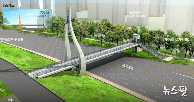 (뉴스핏 = 김호 기자) 파주시는 한국토지주택공사(LH)가 제2자유로로 단절된 운정1ܨ지구 한울마을과 운정3지구 물향기마을을 연결하는 보도육교 설치 공사를 이달부터 본격 착공한다고 밝혔다.