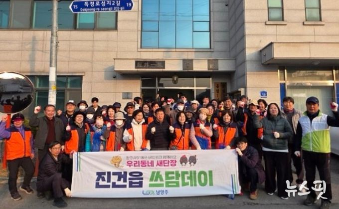 (뉴스핏 = 김호 기자) 남양주시는 진건퇴계원행정복지센터가 11일 진건읍 용정1리 마을 안길과 용정천 일대에서 지역주민, 기업체 직원 등이 함께 참여한 ‘진건읍 쓰담데이’ 환경정화 활동을 진행했다고 11일 밝혔다.