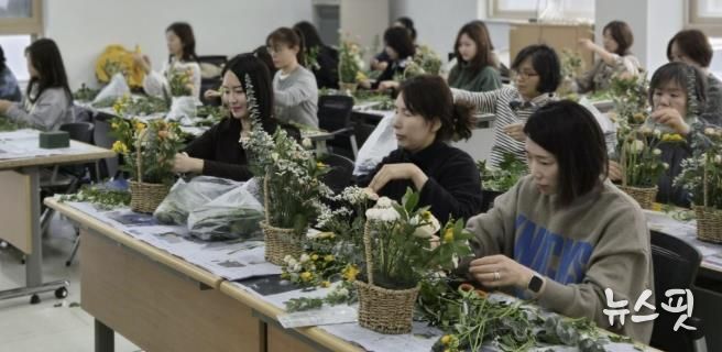 모집 정원은 20명이었으나 주민들의 높은 관심으로 23명이 신청해 초과 모집 형태로 진행됐으며, 참여 주민들은 다양한 꽃을 활용한 꽃바구니 만들기를 체험하며 즐거운 시간을 보냈다.
